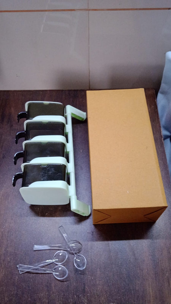 Rotating Spice Jars Vertical Rotatable Seasoning Box Kitchen Tools Seasoning Rack Rotatable Spice Pots Condiment Pots for Pantry Dining Room, 5 Section / Tier With 5 Spoon (1 Set)