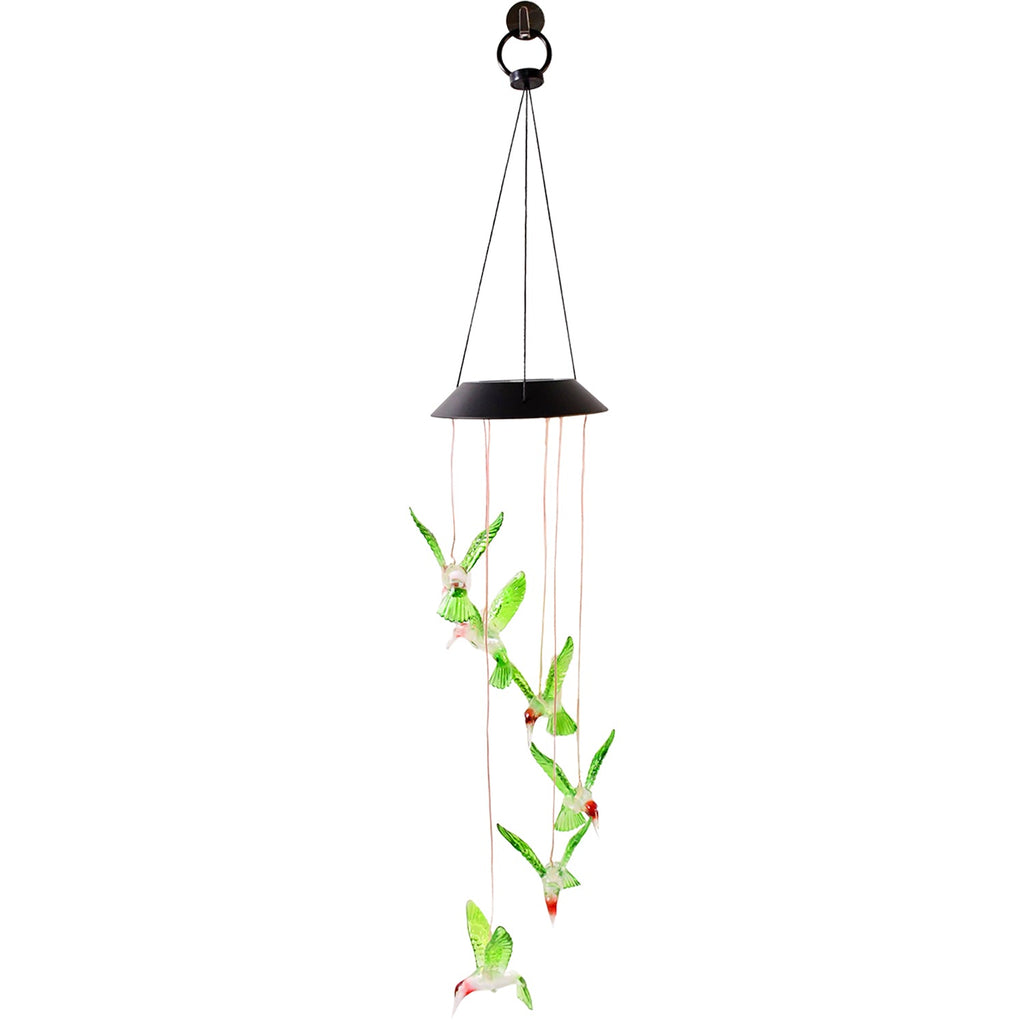 - [SOLAR POWER] The solar panel stores natural energy to illuminate the hummingbird without electricity. Our outdoor wind chime light is the waterproof and durable, great for hanging up at your garden or patio. Easy to use and convenient to hang up, no wire or USB needed. No maintenance required. Simply let nature power the hummingbird Wind Chimes. And if you like environment friendly product, this is the one for you!