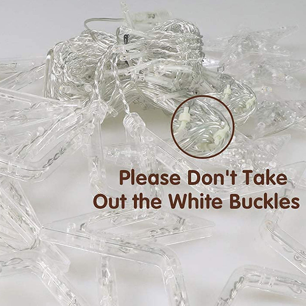 - Easy to use : 12 Stars(2 sizes), total 66 LED curtain string lights, Low voltage and Listed power supply, directly plug in and unplug for power on and off