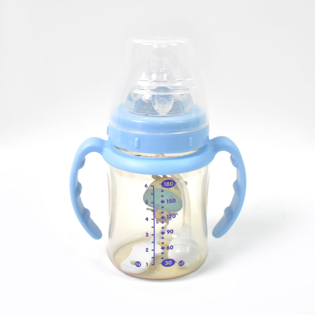 Plastic Baby Feeding Bottle with Plastic Handles, Cleaning brush & Silicone Straw Leakproof, BPA Free & Non-Toxic for Baby | Toddlers, Water Bottle, Milk Bottle for New Born / Infants (180 ML / 1 Pc)